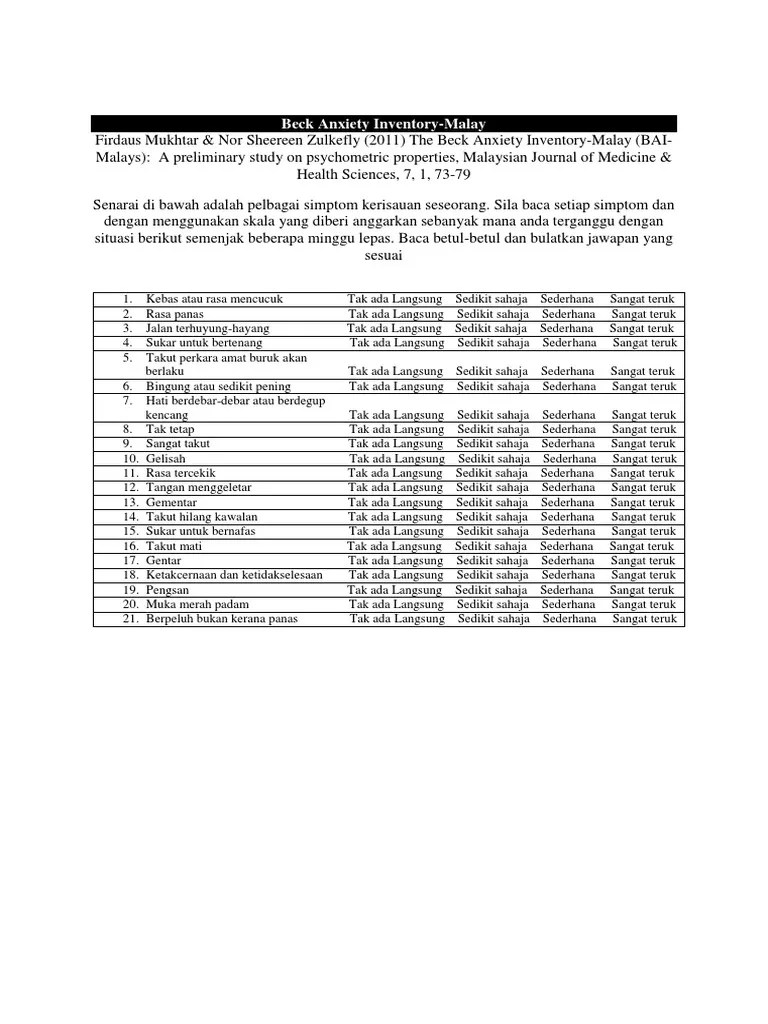 The Beck Depression Inventory (BDI) is a 21 question multiple-choice self-report inventory and one of the most widely used . Becks Anxiety Inventory Pdf are a theme that is being searched for and appreciated by netizens today. You can Download the Becks Anxiety Inventory Pdf here. Download all royalty-free pics. How to Administer BAI?|| Beck anxiety inventory scoring and interpretation||Urdu/ Hindi, how to administer beck anxiety inventory Beck anxiety inventory scoring and interpretation #BAI #psychologyinpakistan Beck .